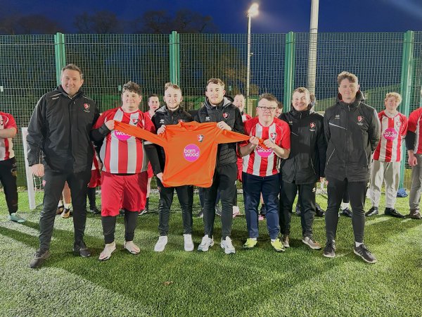 The team were pictured at their recent session wearing their new football shirts, proudly displaying the Barnwood Trust logo. They were also joined by two first team Cheltenham Town Football Club players, Liam Dulson and Darragh Power, who attended to offer words of encouragement and check out the new kit.
