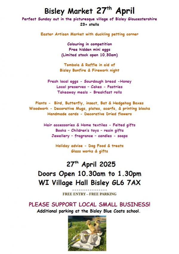 BISLEY ARTISAN MARKET GIFTS & LOCAL PRODUCE 23 + STALLS AND PETTING DUCKLING CORNER