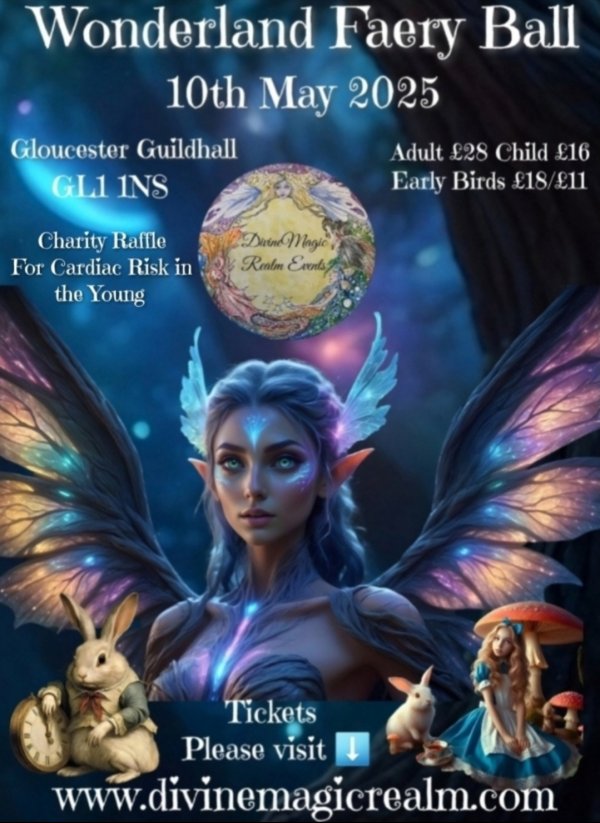Step into Faery Wonderland on the 10th May 2025 at The Gloucester Guildhall for an enchanted evening in the Faery Realm. This year Faeries gather to encorporate the magical theme of Alice in Wonderland.