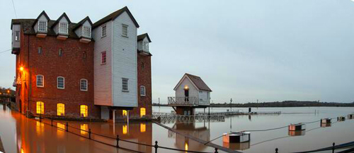 The flooding of 2014 caused the River Severn and Avon to breach their banks and here can be pictured the local Mill completely surrounded by the flood waters.