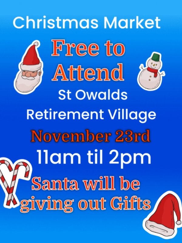 Dates: Sunday 23rd November 2025 - Christmas Market and Stalls - St Oswalds Retirement Village