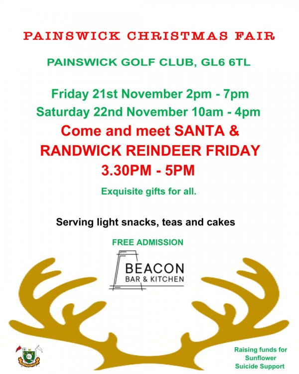 Our Annual Christmas Fair will be raising funds for Sunflowers Suicide Support at Painswick Golf Club on 21st Nov (2pm-7pm)and 22nd Nov (10am-4pm).