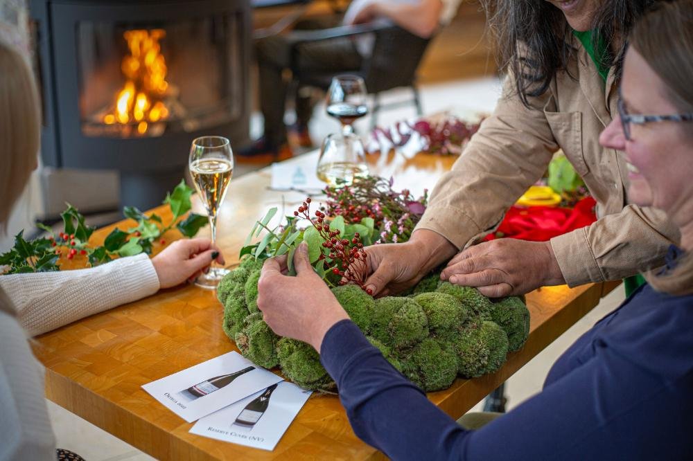 You’ll be welcomed with a glass of our Cotswold Classic sparkling wine whilst you are guided through the basics of wreath decorating, during the masterclass there will be a guided wine flight of three wines, followed by a top up of your favourite glass after you have finished your wreath.