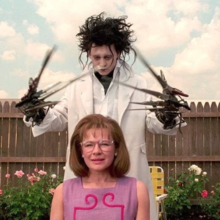 In a castle high on top of a hill lives an inventor's greatest creation - Edward, a near-complete person. The creator died before he could finish Edward's hands; instead, he is left with metal scissors for hands. Since then, he has lived alone, until a kind lady called Peg discovers him and welcomes him into her home. At first, everyone welcomes him into the community, but soon things begin to take a change for the worse.