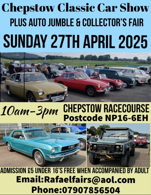 Dates: 27th April 2025 - Classic Car Show Plus Auto Jumble & Collector's Fair
