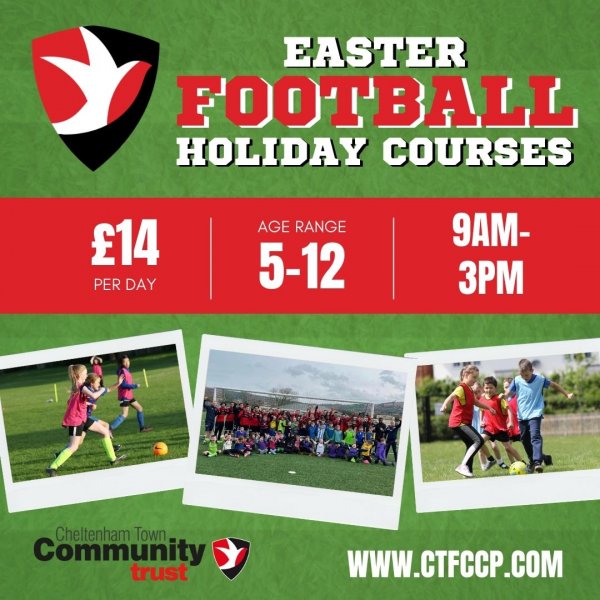 Looking for an exciting way to keep your child active over the school holidays? Cheltenham Town Community Trust’s football courses are back for Easter and May Half Term, with dedicated Girls Only sessions!