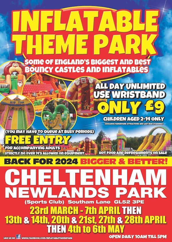 Come and see some of the Uk’s biggest and best GIANT Inflatables at Newlands Park, Southam Lane, Cheltenham, GL52 3PE.