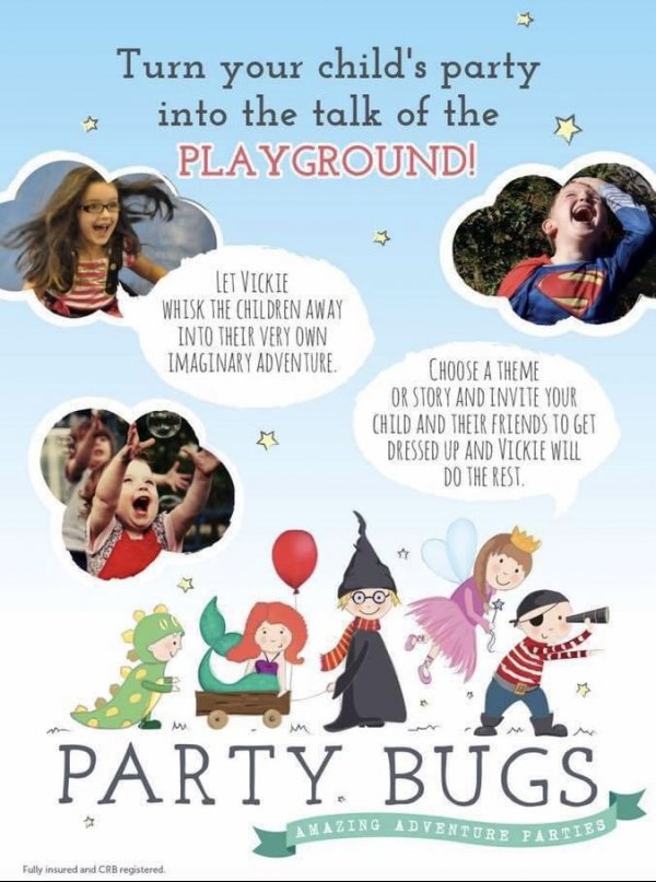 Party Bugs is run by Vickie Long, a local drama teacher and children’s party entertainer. She draws on the art of storytelling and imagination to engage your children and will whisk them off on the most amazing imaginary adventure party!
