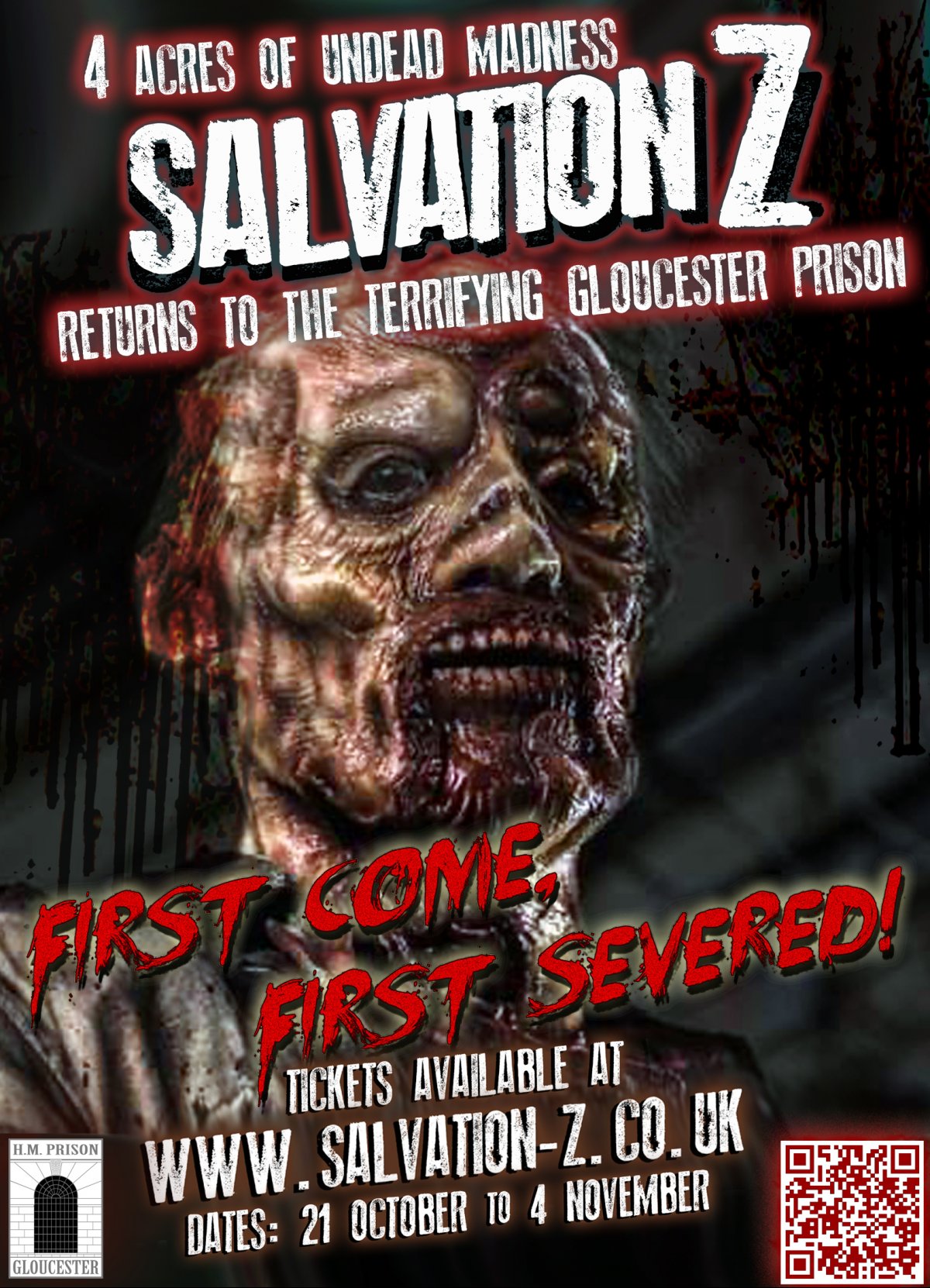 Once again the hugely successful, horribly scary, highly rated Salvation-Z returns to the terrifying Gloucester Prison. 4 acres of Un-dead madness, with some very much still living madness to chase, catch and consume you.