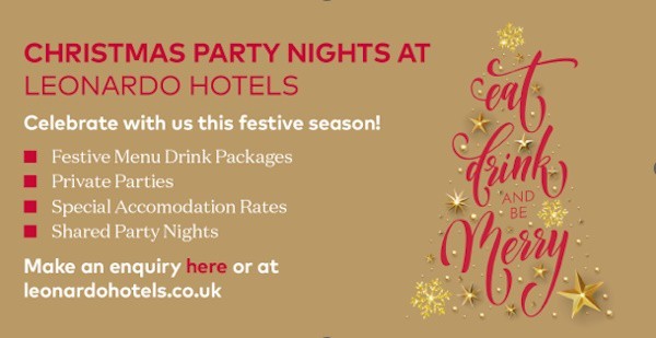Begin the festive season with a Christmas party celebration at Leonardo Hotel Cheltenham complete with a 3-course meal, entertainment and novelties. More HERE.