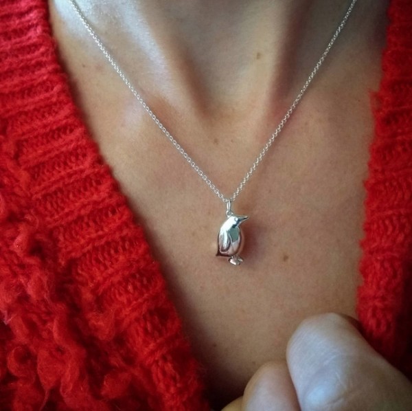 The perfect winter accessory, this seasonal sterling silver piece features a sweet little penguin, measuring a dainty 9mm high x 7mm wide. It comes with a matching chain which can be worn at 16 or 18 inches.