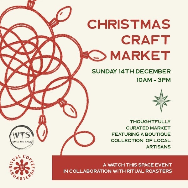 We're delighted to be joining up with Watch This Space this December for a thoughtfully curated market featuring beautiful, locally sourced handcrafted artisan products — the perfect opportunity to pick up unique gifts and support local makers. Grab a cup of coffee and a bite to eat, take your time to browse, and enjoy a relaxed festive atmosphere. More HERE.
