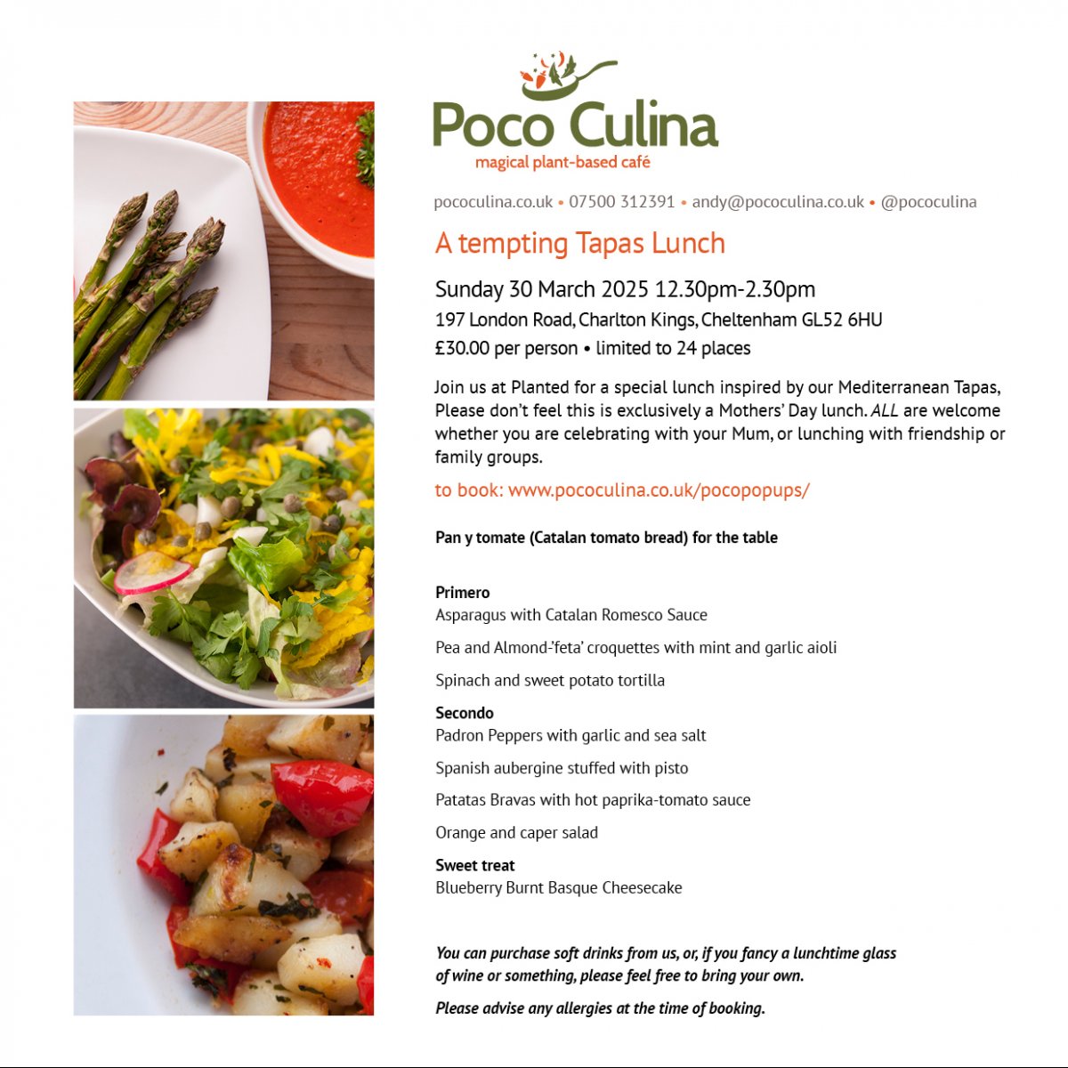We still have some places available for our gorgeous Tapas inspired multi-plate lunch at PLANTED.