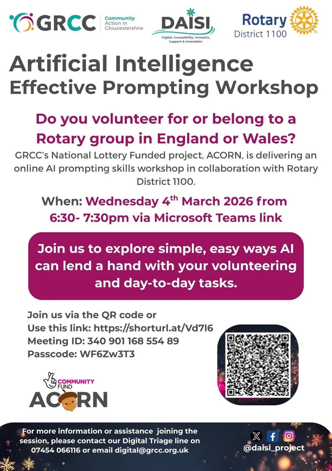 Rotary District 1100, has partnered with GRCC's Daisi Project to bring you a good opportunity: An Artificial Intelligence Webinar for your daily life. AI is and will have a major effect in society. How about starting with the basics?