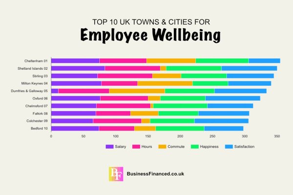 BusinessFinanced.co.uk today unveiled its Employee Wellbeing League Table, providing an insightful analysis of employee wellbeing across 86 UK towns and cities. The report reveals fascinating trends and offers a unique perspective on how employee wellbeing varies nationwide, highlighting the factors that shape workplace experiences.