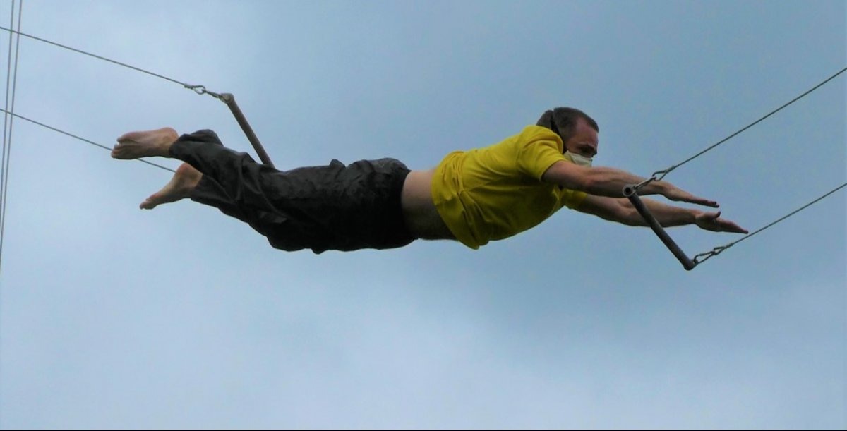 Additionally we run indoor aerial classes, teaching static trapeze, silks and rope at Chosen Hill school in Churchdown. These are great fun on their own, and a fabulous way to cross train for flying trapeze.