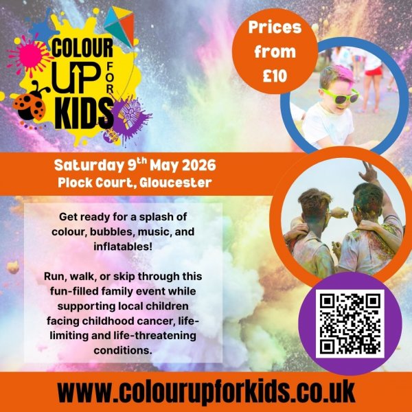 Get ready to get messy, smile big, and make a difference! Colour Up for Kids is a vibrant 5km fun run packed with colour, laughter, and feel-good vibes. This exciting event will take place on Saturday 9th May 2026 at Plock Court.