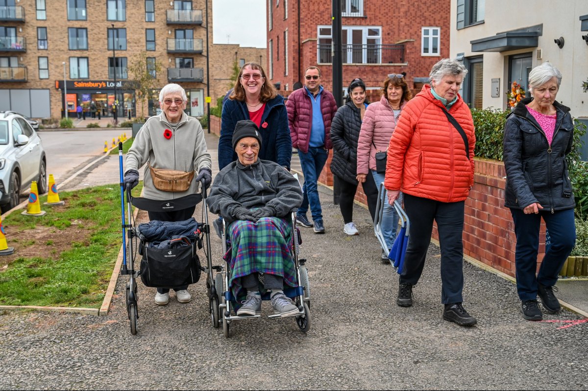 Residents and team members at Care UK’s Ladden View, on Fletcher Road, joined local residents for the annual Remembrance Walk through Ladden Garden Village. As part of this special event, attendees walked a dedicated route marked by plaques along the village streets, each one named after fallen soldiers and personnel who served in the War.