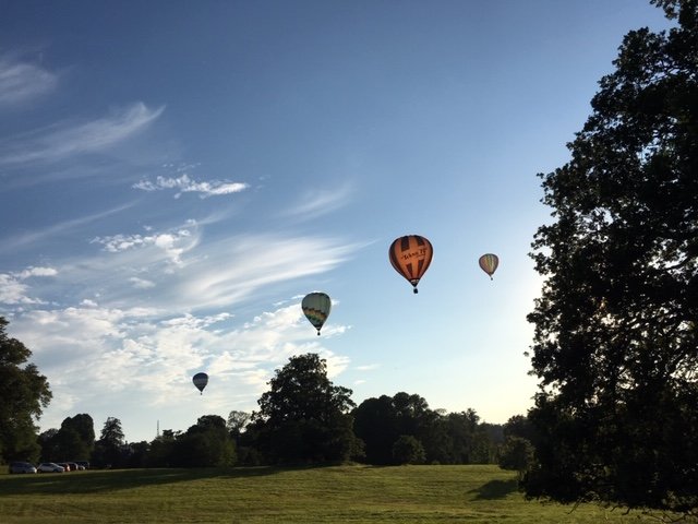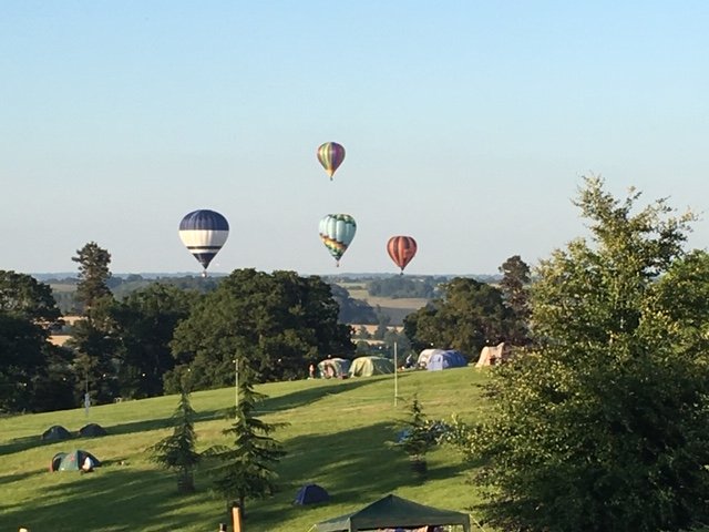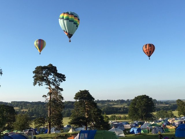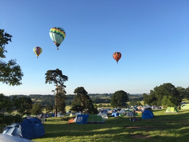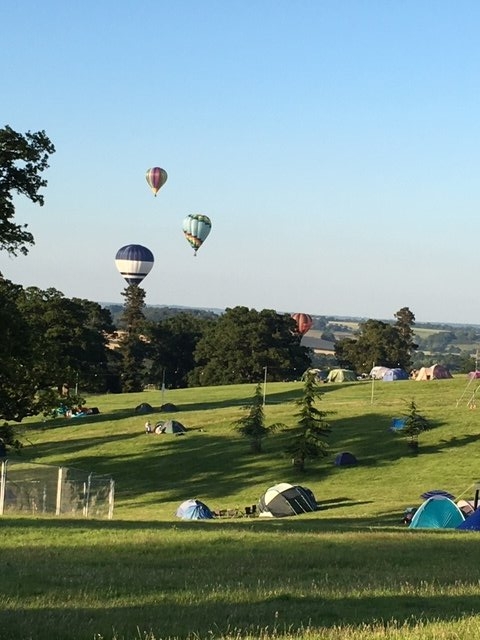 On Friday evening, the conditions were perfect for flying hot air balloons over the campsite at Cornbury Festival
