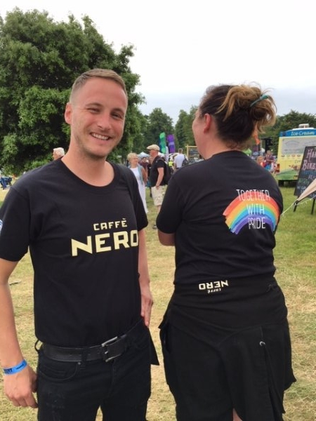 Cafe Nero had a stage at Cornbury Festival and on the same day as London Pride, they were wearing T-shirts that said "Together with Pride".