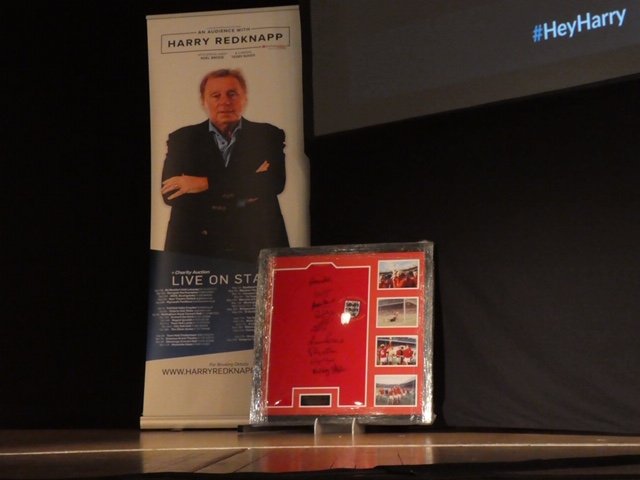 During the interval over £2,000 was raised for an array of charities in an auction for signed, framed football shirts from Pele, Messi, Ronaldo and a 40th Anniversary England 1966 shirt signed by the 9 surviving players. So far this year, the Harry Rednapp and Geoff Hurst talking tours have raised over £300,000 for a long list of charities. As well as the shirts, there was an array of other signed memorabilia on sale in the foyer. Judging by the enthusiasm of people to purchase these items, these items will have added significantly to the charity total for the night. Everything in the charity auction is donated by Terry Baker and his wife, who run A1 Sporting Speakers & Guests Ltd. They are hoping to raise the admirable amount of £500,000 for the charities by the end of the tours in 2020.
