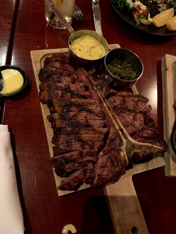 The quality of each steak was top-notch with the head chef cooking each cut to a favourable medium-rare. The T-bone, Sirloin and Fillet steak were all seasoned well and delicious on the pallet. Each steak complimented by side orders of triple-cooked chips, skinny fries, house salad and macaroni cheese. A choice of vegetarian salads plus a delightful pan-fried cod were also brought to the table.