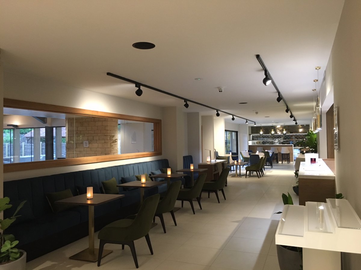 Smart new entrance area from the large car park at The Spa, which is round the back to the right as you arrive at Hatherley Manor Hotel.