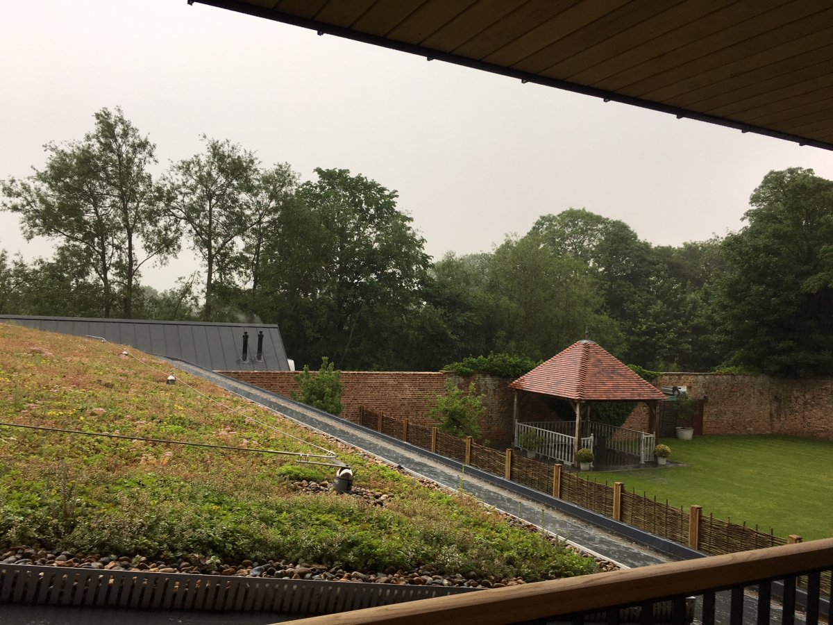 The view from one of the purpose built hotel bedrooms, which overlook the wedding garden. One of the rooms is designed with the bride in mind, so it overlooks the wedding space and has lots of room for getting ready on your wedding day!