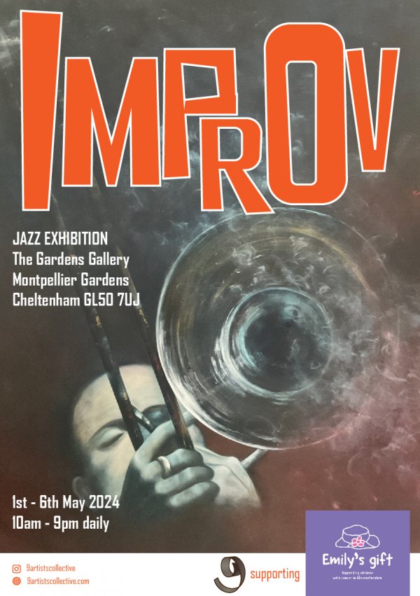 We are 9 Artists Collective, a group of Gloucestershire based artists, who have been selected to exhibit alongside this year's Cheltenham Jazz Festival. Our exhibition will jostle through jazz history, politics, culture, performance and musicianship. Nothing is scripted, nothing is out of bounds.