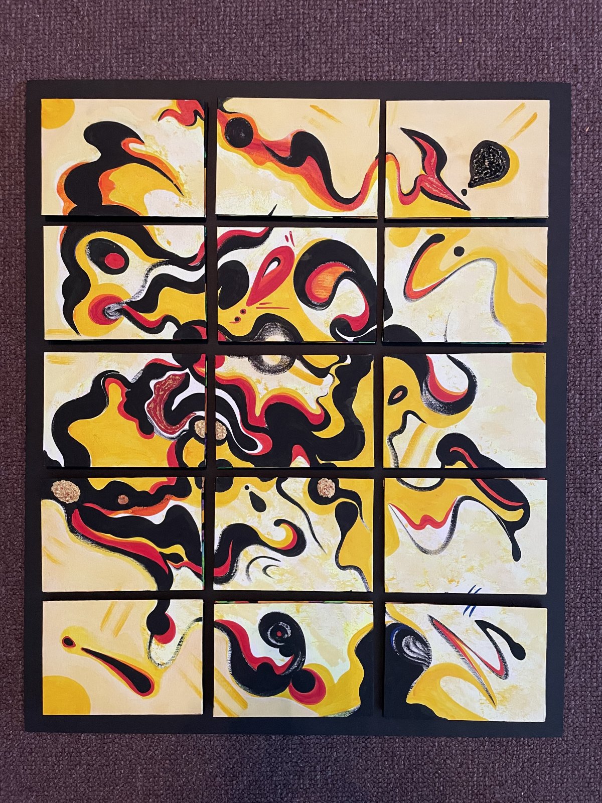 Recently Karen has created several multi-paneled works, each of which explores the concept of connection through fragmentation. This approach is designed to capture physical complexity and reflect emotional intensity by inviting the viewer to focus on individual panels, on discrete combinations of panels, and ultimately on the artwork in its entirety, the composite representing a greater whole than the parts.