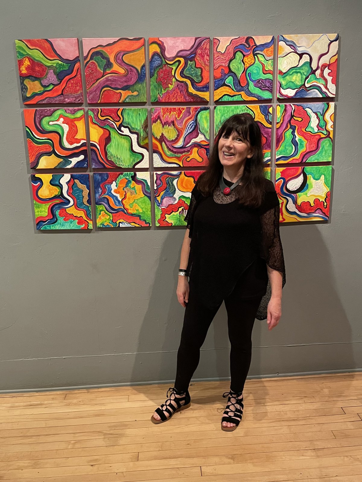 Generally, her abstract paintings are untitled to avoid interfering with a viewer's authentic personal connection with her work. Infinity, the largest and earliest piece in the show is an exception.