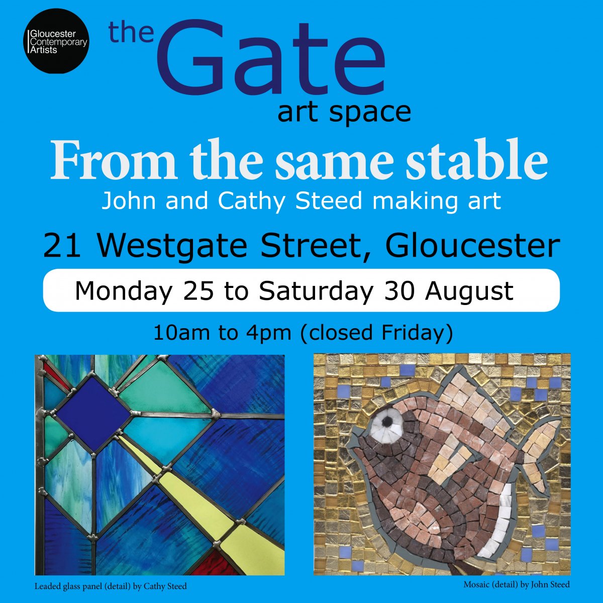 John and Cathy Steed are two artists who usually work from their studios in a former stable block at the end of their garden. From Monday 25 to Saturday 30 August they will be temporarily transporting their studios to The Gate art space at 21 Westgate Street, Gloucester.