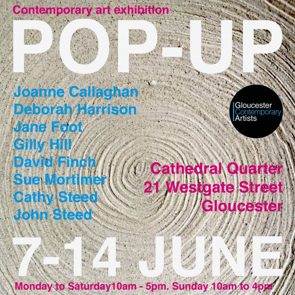 POP-UP’, a contemporary art exhibition by eight professional Gloucester artists will include paintings, sculpture and glasswork by Joanne Callaghan, Deborah Harrison, Jane Foot, Gilly Hill, David Finch, Sue Mortimer, Cathy Steed and John Steed.