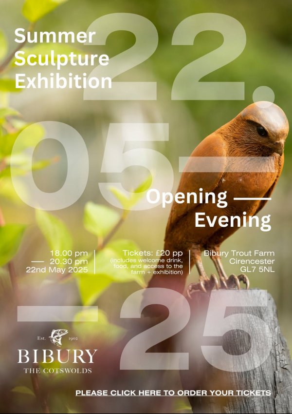 Join us at Bibury Trout Farm for the Opening Evening of our Summer Sculpture Exhibition on Thursday 22nd May, from 6pm–8:30pm.