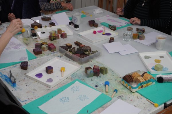 Sessions start gently with greeting cards before you move on to your chosen pieces, using hand-carved wooden blocks and fabric paints to create something entirely your own.