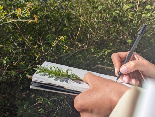 In the two hours, we will be walking in Wardens' Wood with sit stops to draw what we see, smell, hear… Our aim is not to create a masterpiece but to enhance our connection to nature through the medium of drawing.