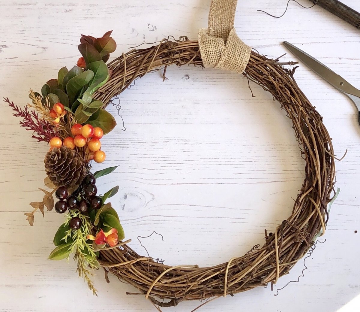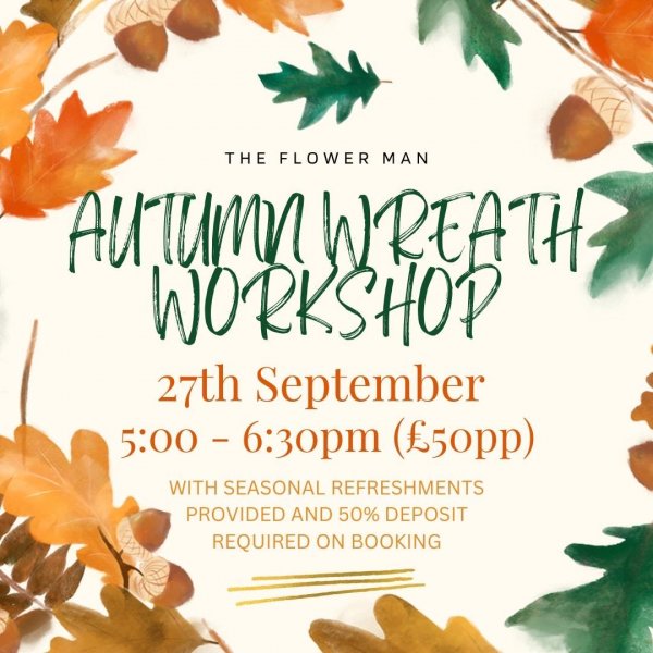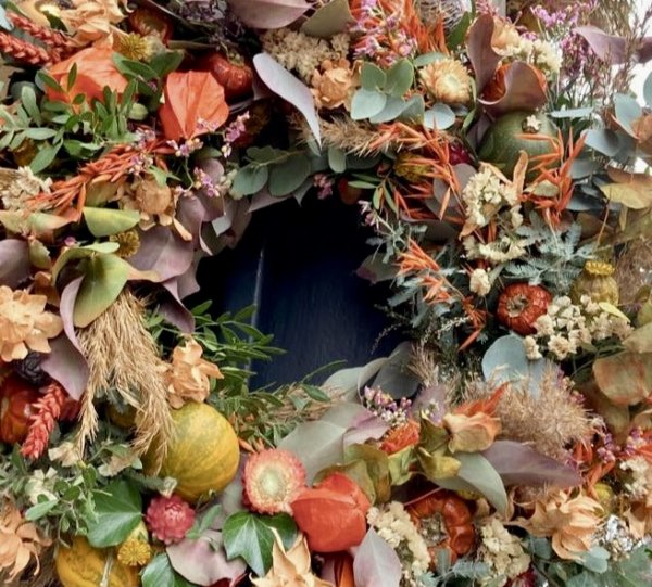 Join us for a fun evening of creativity and learn the skills to create your own Autumnal door wreath. We’ll be using a mixture of beautiful fresh and dried flowers in lovely Autumn jewel colours.