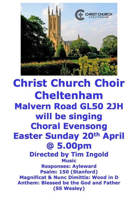 Choral Evensong for Easter Sunday sung by the Choir of Christ Church and Directed by Tim Ingold. The music for the service will be: