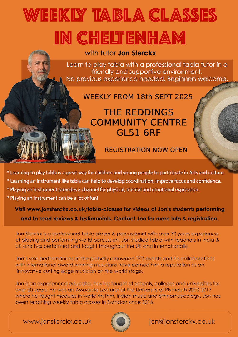 Weekly Tabla Classes in Cheltenham – starting on 18th September 2025.