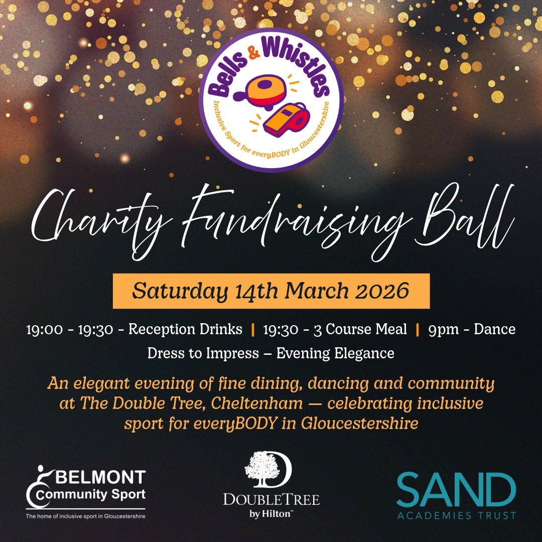 An elegant evening of fine dining, dancing and community, this special event is also a fantastic opportunity to discover more about the 'Bells and Whistles' campaign for Belmont Special School—a bold and joyful initiative celebrating inclusive sport for everyBODY in Gloucestershire. Come along to enjoy a glamorous night out while learning how this campaign is helping to create life-changing opportunities through accessible sport and movement. Feel good, look great, and be part of something that truly matters.