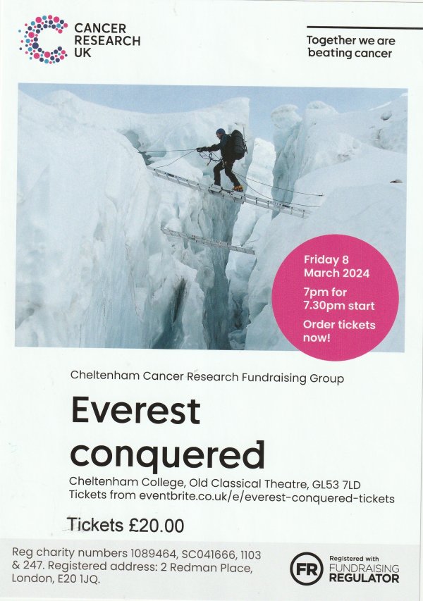 Everest conquered - an inspirational talk by Tom Clowes in support of Cancer Research UK