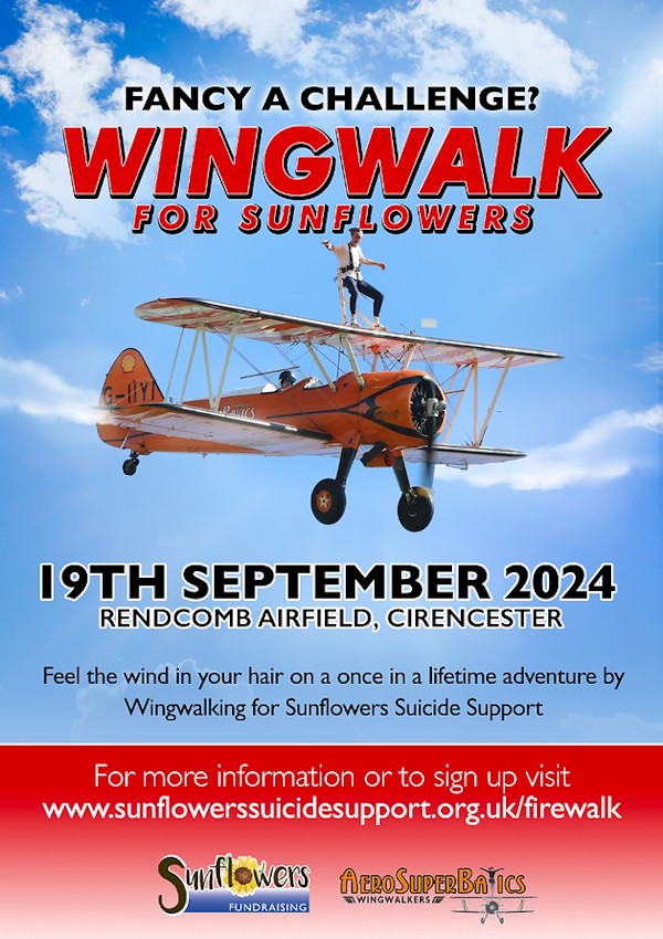 Feel the wind in your hair on a once in a lifetime adventure by Wingwalking for Sunflowers Suicide Support