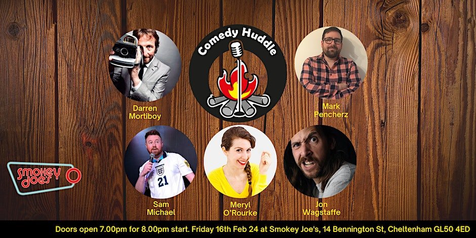 Doors open 7.00 pm for 8.00 pm start but why not come early for a drink or a bite at Smokey Joe's? It's a wonderful family-owned place with great food and a long history. If you'd like dinner, please aim to eat before the comedy starts. Book a table early by contacting Smokey Joe's. The food won’t be served during the comedy night.