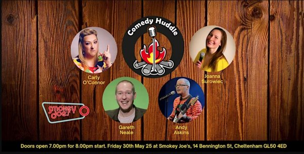 Doors open 7.00 pm for 8.00 pm start but why not come early for a drink or a bite at Smokey Joe's? It's a wonderful family-owned place with great food and a long history. If you'd like dinner, please aim to eat before the comedy starts. Book a table early by contacting Smokey Joe's. Please aim to finish eating before comedy starts. The food won’t be served during the comedy night.