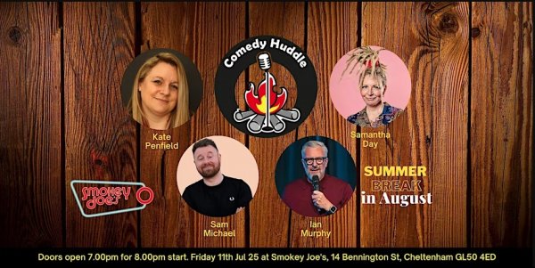 Doors open 7.00 pm for 8.00 pm start but why not come early for a drink or a bite at Smokey Joe's? It's a wonderful family-owned place with great food and a long history. If you'd like dinner, please aim to eat before the comedy starts. Book a table early by contacting Smokey Joe's. Please aim to finish eating before comedy starts. Food won’t be served during the comedy night.