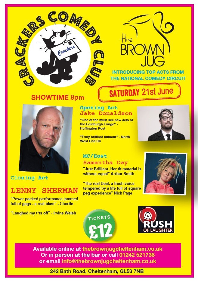 Tickets on line at thebrownjugcheltenham.co.uk