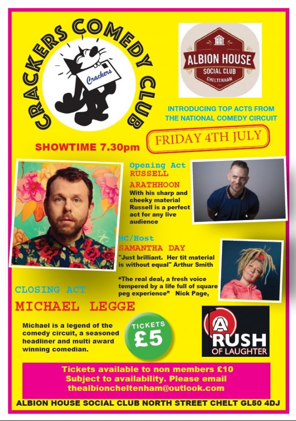 A private members club with non members welcome at the Comedy night. To enquire and purchase tickets for £10 email thealbioncheltenham@outlook.com