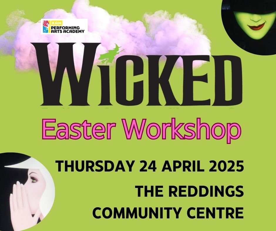 Calling all young witches, wizards, and munchkins 🧙♀️🐰 This Easter, let your child step into the magical world of Wicked with our spellbinding Wicked Easter Workshop at The Reddings Community Centre on Thursday, 24 April 2025.