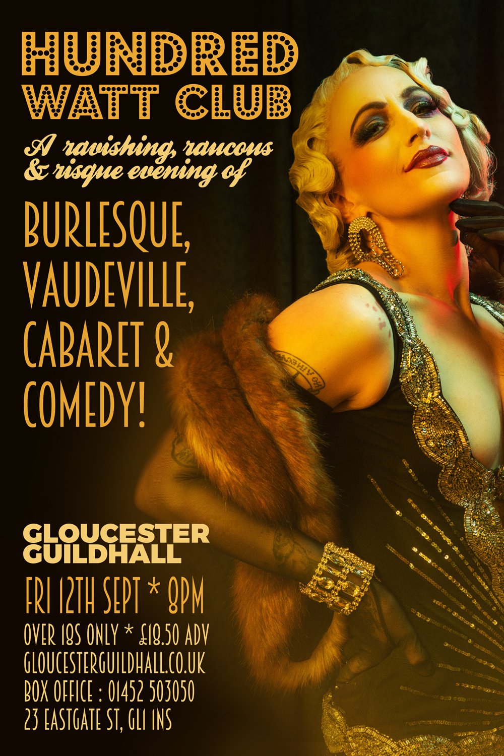 Gorgeously ravishing, deliciously risqué and just a little bit ridiculous, travelling vaudeville show Hundred Watt Club bring a glittering, sizzling line-up of burlesque showgirls, comedy, circus and cabaret acts to Gloucester Guildhall!
