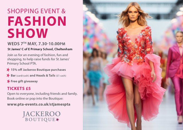 π° Cost: £5 (SJP school community book on the PTA website. You can book for your friends/family on here too. General public can pay cash/card on the door or buy tickets direct from Jackeroo Boutique in-store.)